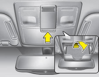 Pour ouvrir le casier à lunettes, appuyez sur le casier et il s'ouvrira lentement. Placez vos lunettes de soleil dans le volet, les lentilles vers l'extérieur. Poussez le volet pour fermer le casier.
