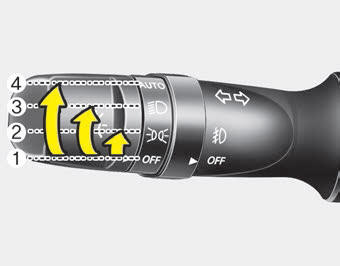 Le commutateur offre une position pour les phares et une pour les feux de position. Pour actionner l'éclairage, tournez le bouton au bout du levier de commande, sur l'une de ces positions :