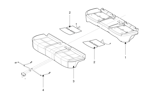3. Recouvrement du siège arrière 4. Câblage d'extension de chauffage de siège arrière |