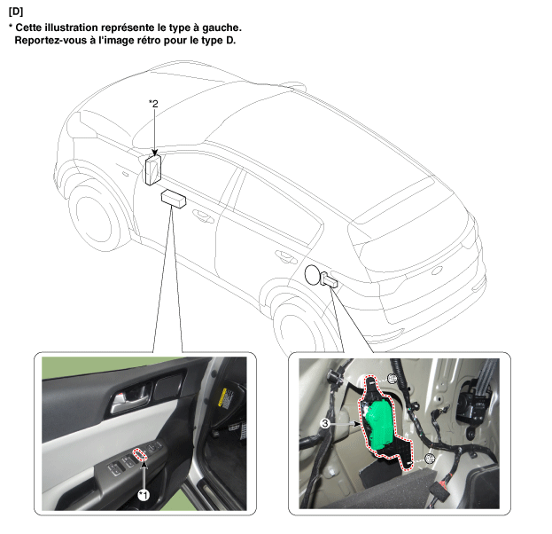 3. Actionneur de déverrouillage de la porte de remplissage de carburant