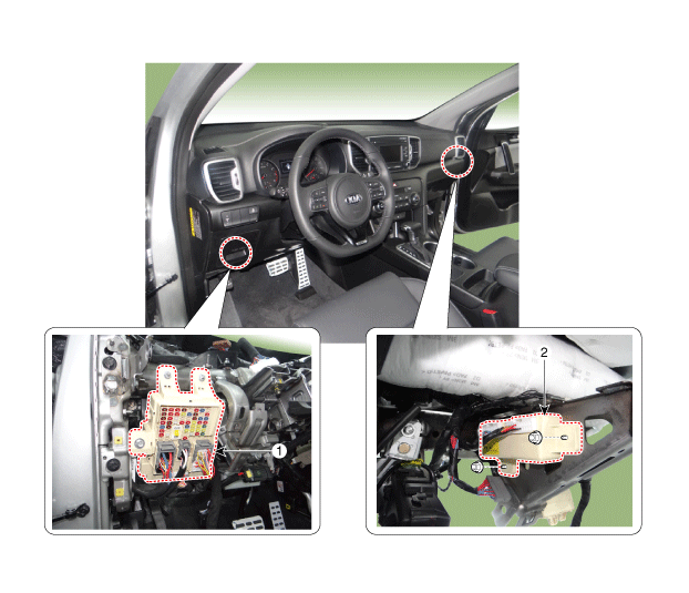 Boîte de relais (Compartiment moteur): Composants et emplacement des composantsCouvercle latéral du coussin anti-collision: Composants et emplacement des composants