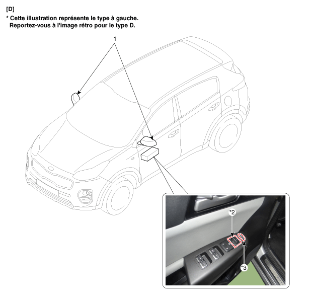 1. Rétroviseur électrique 2. Interrupteur du rétroviseur électrique |