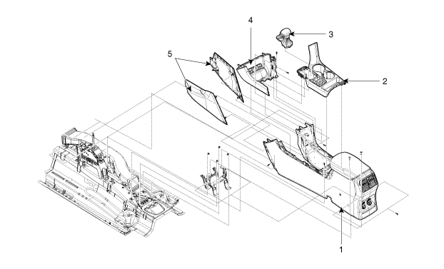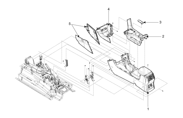 4. Plateau avant de console 5. Couvercle latéral de console |