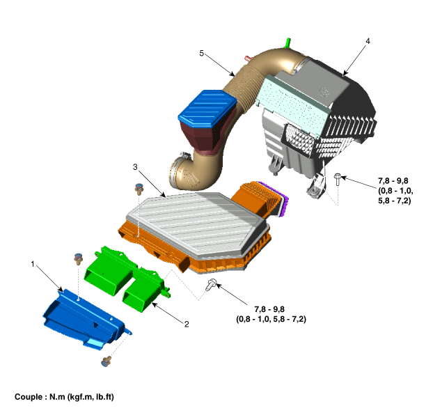 4. Ensemble du filtre à air 5. Tuyau d'admission d'air |