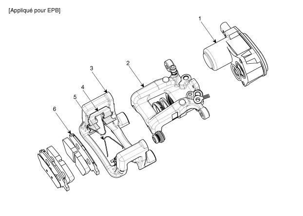 1. Moteur EPB 2. Corps de l'étrier 3. Support de l’étrier |