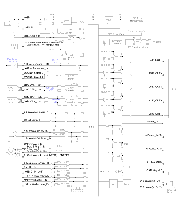 (bas) sont commandées en se basant sur l'entrée du capteur éclairage auto (intensité