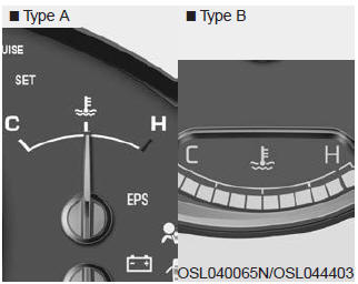Cet indicateur renseigne sur la température du liquide de refroidissement du moteur, quand la clé de contact est sur ON.