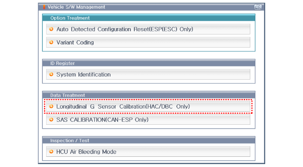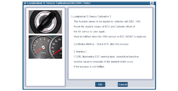 Effectuez le calibrage du capteur G longitudinal.
