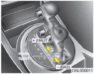Au mode sport, déplacer le levier vers l'arrière ou l'avant permet de changer de vitesses rapidement. Contrairement à une boîte manuelle, le mode sport permet le changement de vitesses sans relâcher l'accélérateur.