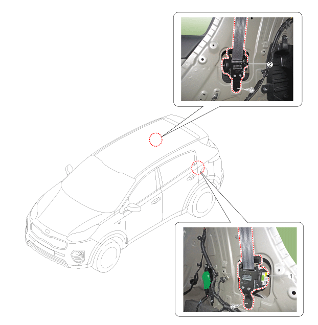 1. Rétracteur de la ceinture de sécurité arrière [G] |