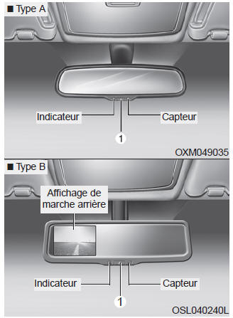 Dès que vous placez le levier de changement de vitesses en marche arrière (R), le rétroviseur passe automatiquement au niveau d'éclairage le plus brillant afin d'améliorer la vue du conducteur vers l'arrière.